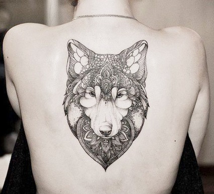 El mayo espacio para un buen tatuaje con la cara de un lobo, la espalda. Allí queda muy sensual y al mismo tiempo muestra fortaleza y dureza.